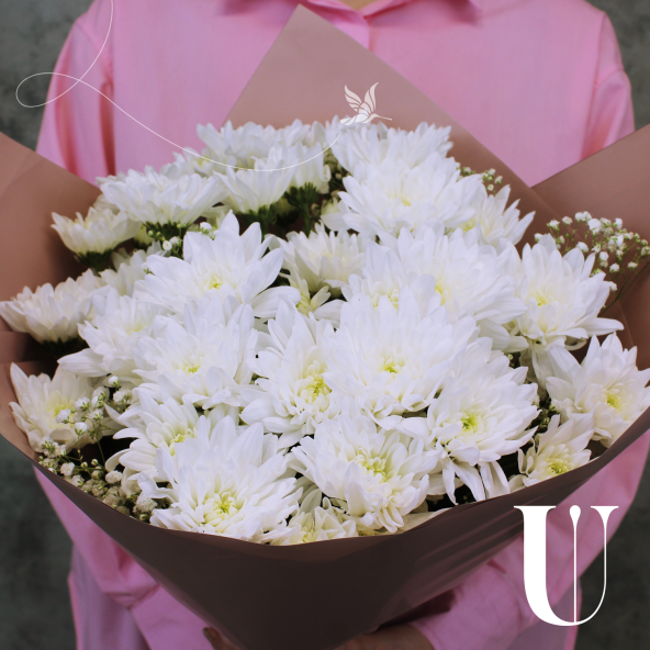 Выбирая классический сборный букет из 7 белых кустовых хризантем с гипсофилой, Вы делаете прекрасный и запоминающийся подарок, который будет радовать получателя своей элегантностью и нежностью.