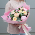 Букет из пионовидных роз и розовых пионов с эвкалиптом Энджи Романтика станет отличным подарком для любого человека. Он подойдет как ребенку, так и деловому партнеру, бабушке, любимой, маме или коллеге.