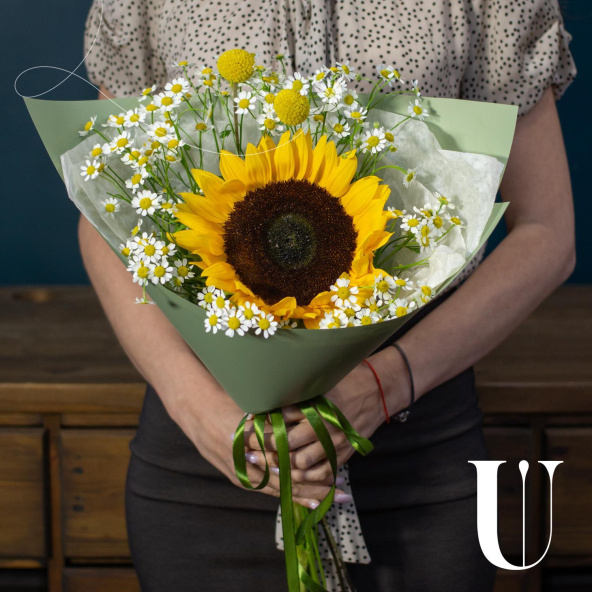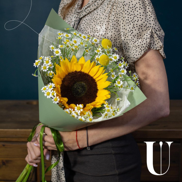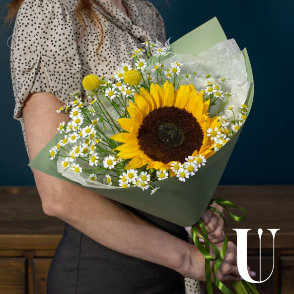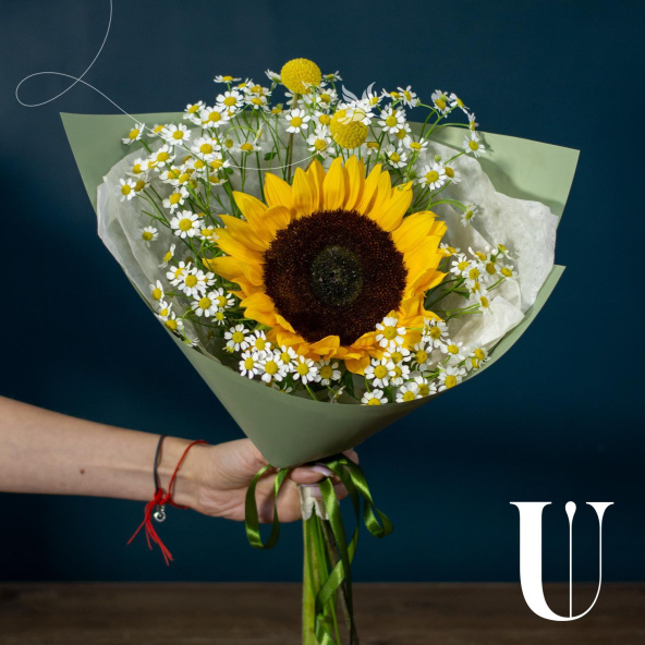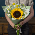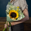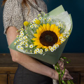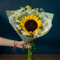 Цветочная композиция из гортензии, гвоздик и альстромерии