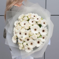 Букет в белой гамме из минигербер и пионовидных кустовых роз "Айс" - это стильный и элегантный выбор для любого повода.