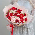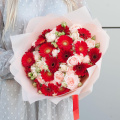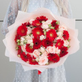 Выбирая букет из красных минигербер и пионовидных кустовых роз "Жажда цвета", вы делаете отличный выбор для подарка, который будет радовать получателя своей красотой и свежестью.