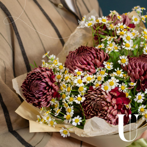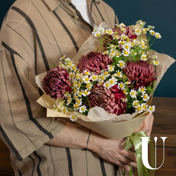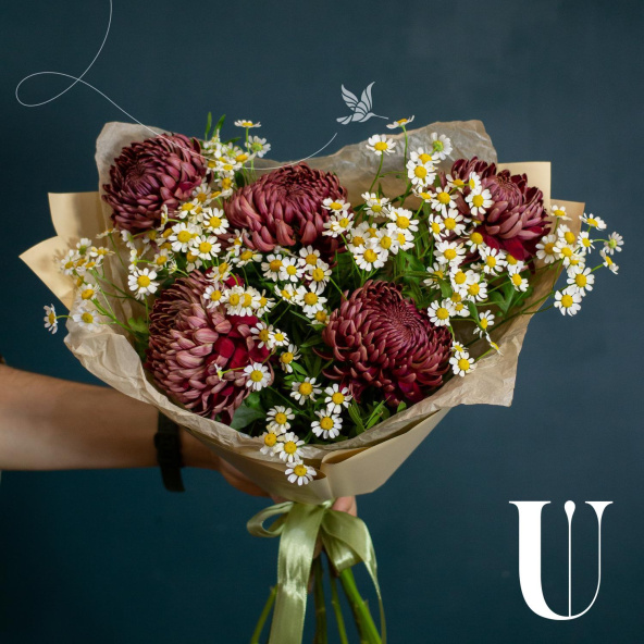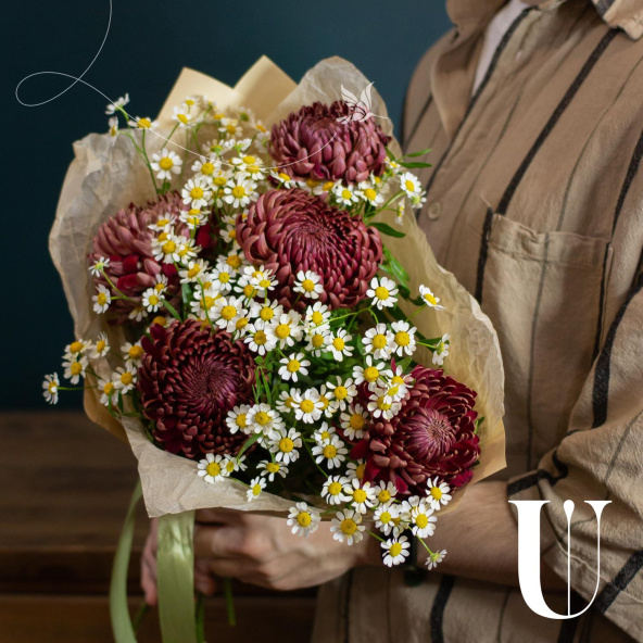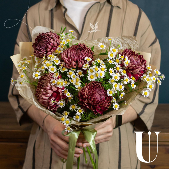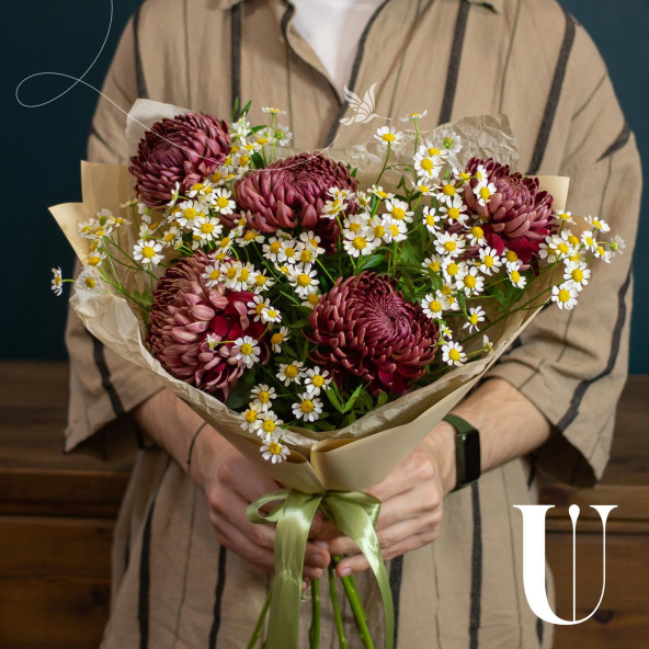 - Хризантема Бигуди, бордовая, 50 см - 5 шт