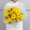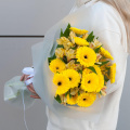 Букет из желтых минигербер и желтых альстромерий "Сан Шайн" - это стильный и яркий подарок, который подойдет для любого повода и станет прекрасным дополнением к любому торжеству.