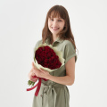 Классический букет из роз, кустовых хризантем и эустомы в упаковке