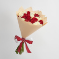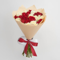 Классический букет из роз, кустовых хризантем и эустомы в упаковке