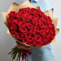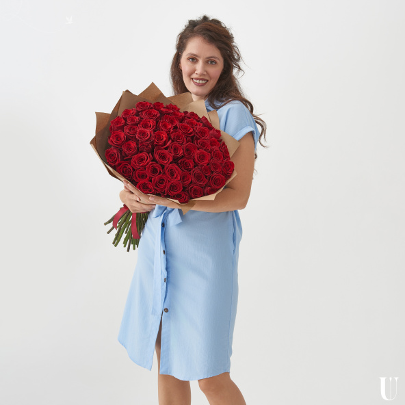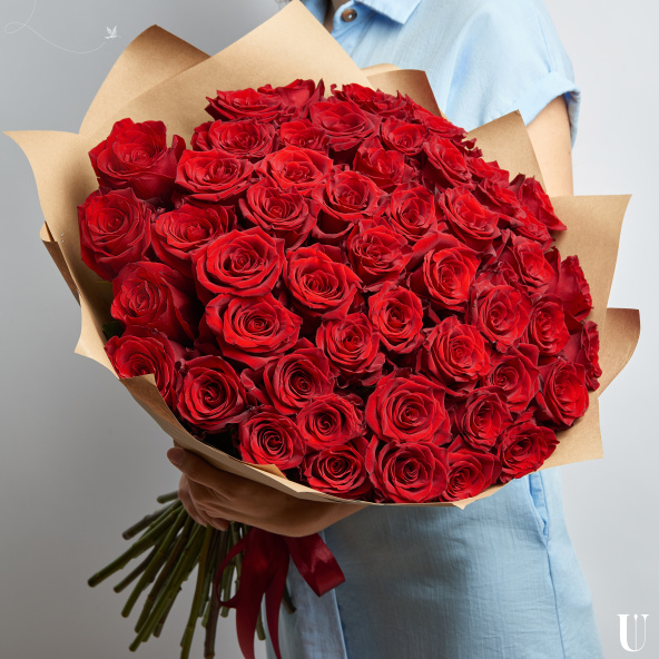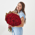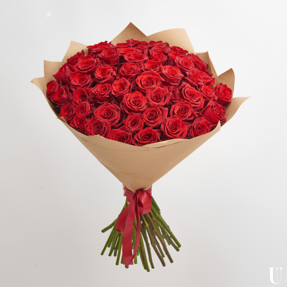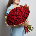 Букет из роз Кахала, лавандовых маттиол и кремовых кустовых роз в упаковке