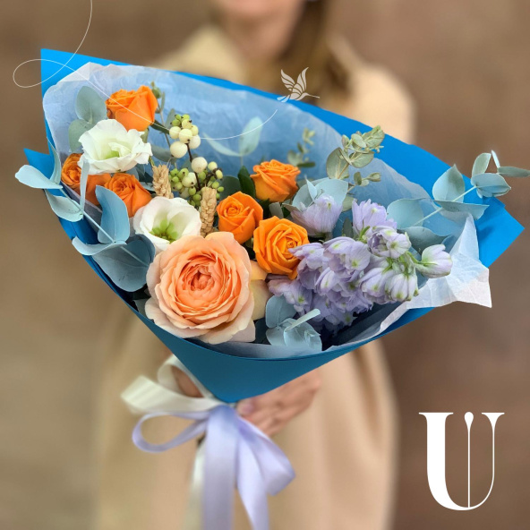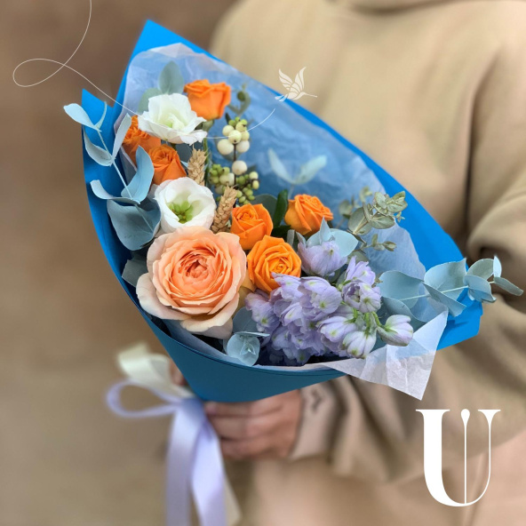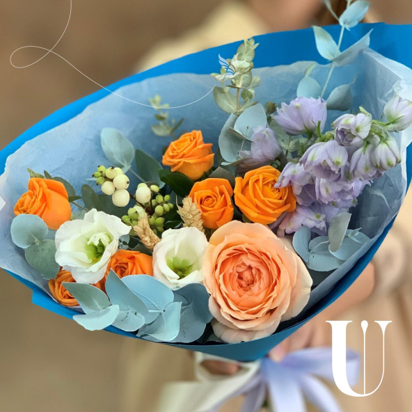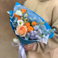 - Роза кустовая, оранжевая, 40 см. - 2 шт