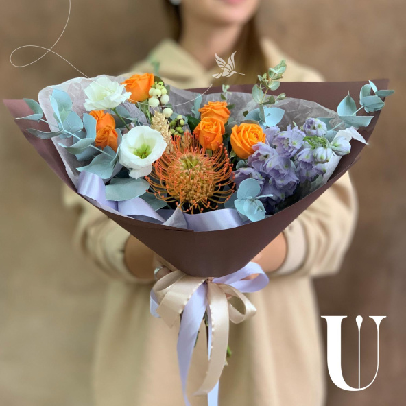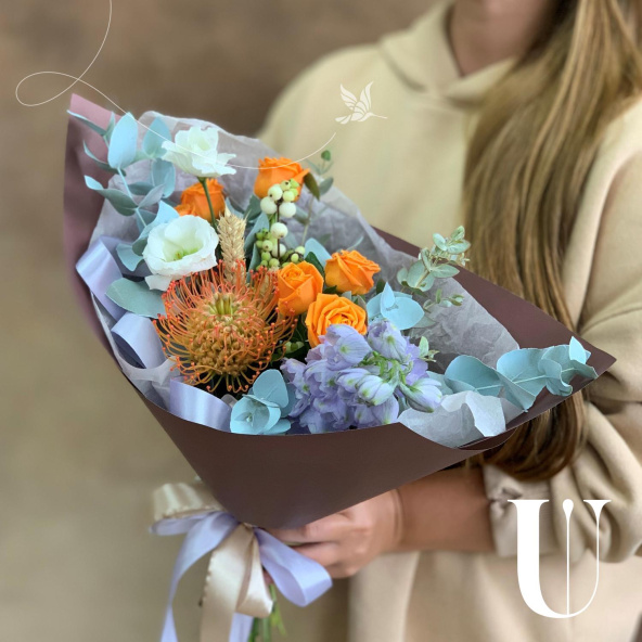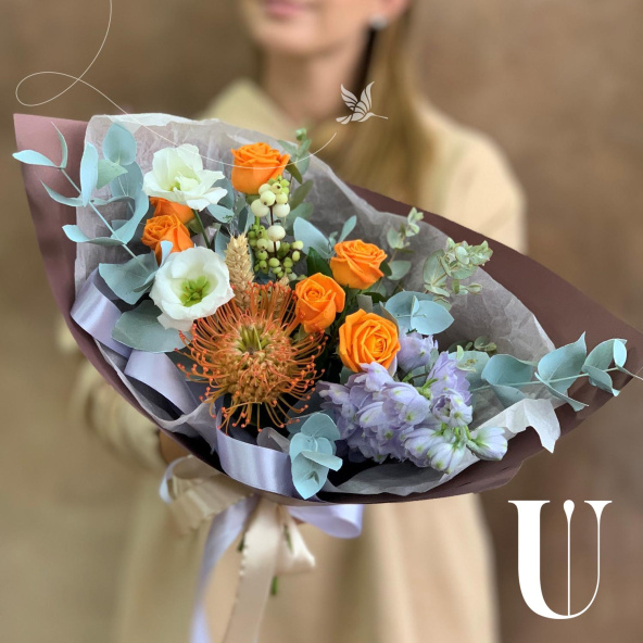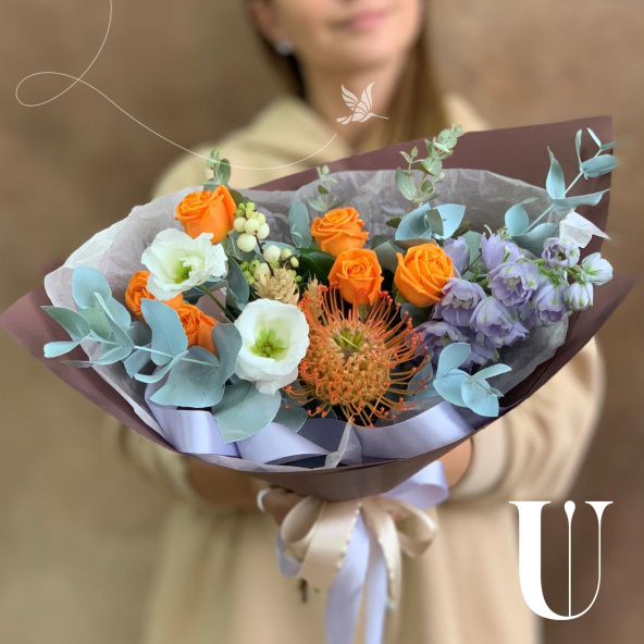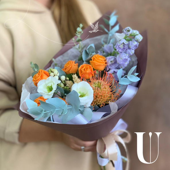 - Роза кустовая, оранжевая, 40 см. - 2 шт