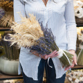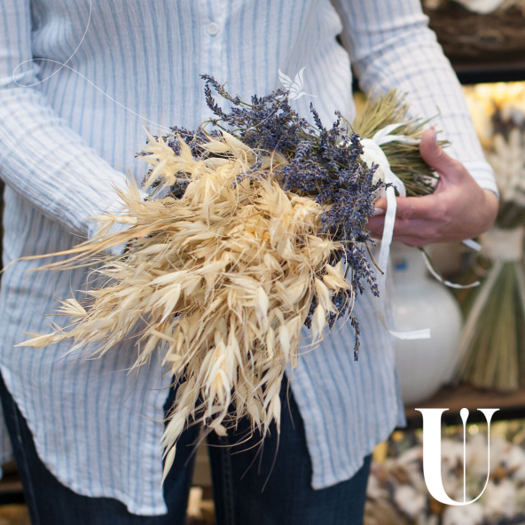 Букет сухоцветов из белого хлопка и эвкалипта в упаковке