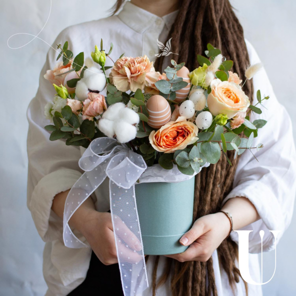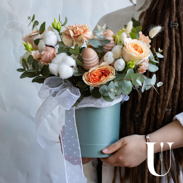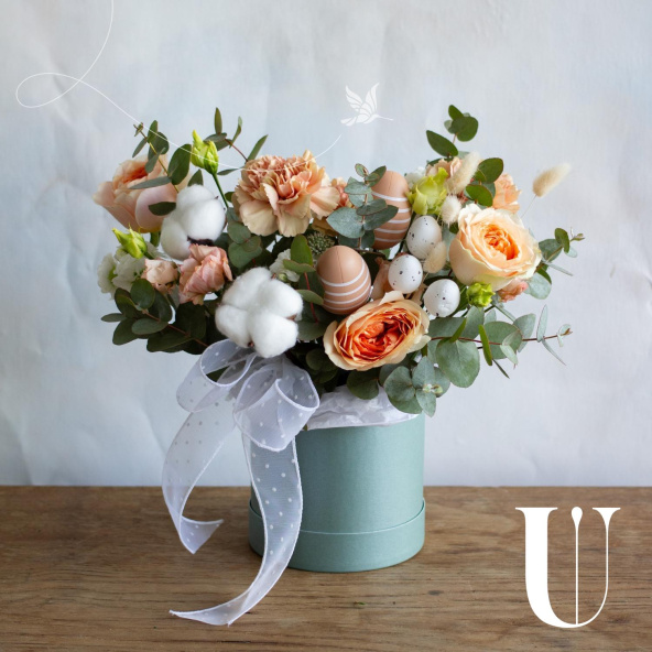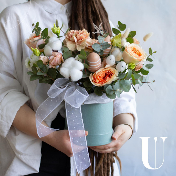 - Шляпная коробка маджестик (U), светло-голубая (выс. 15 см, диам. 15 см) - 1 шт