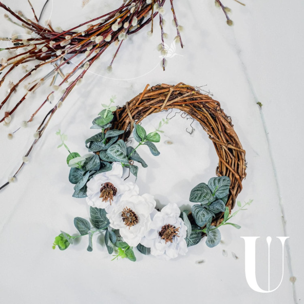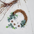 Букет сухоцветов из белого хлопка и эвкалипта в упаковке
