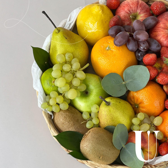 Фрукты представленные в композиции используются сезонные и могут отличаться по размеру и цвету, однако все ингредиенты будут обязательно свежими, а композиция максимально соответствовать представленной на фото.