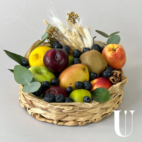 Фрукты представленные в композиции используются сезонные и могут отличаться по размеру и цвету, однако все ингредиенты будут обязательно свежими, а композиция максимально соответствовать представленной на фото.