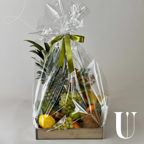 Фрукты представленные в композиции используются сезонные и могут отличаться по размеру и цвету, однако все ингредиенты будут обязательно свежими, а композиция максимально соответствовать представленной на фото.