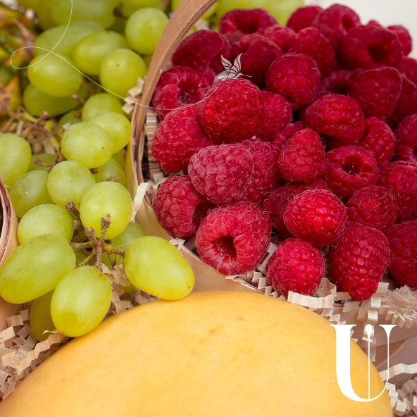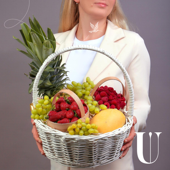 Фруктовая корзина из ананаса, помело, бананов, винограда и других фруктов