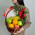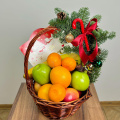 Новогодняя корзинка с фруктами и конфетами
