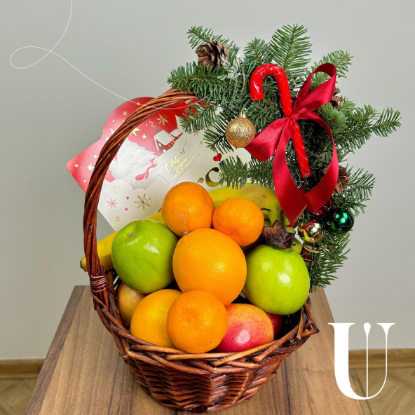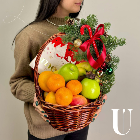 Новогодняя корзинка с фруктами: