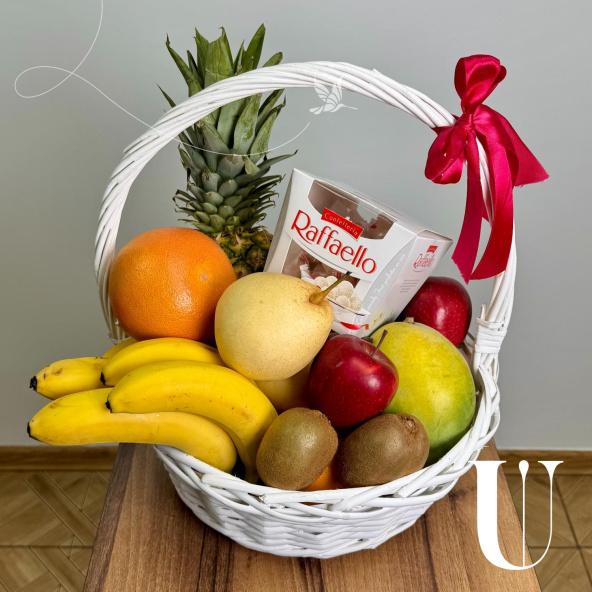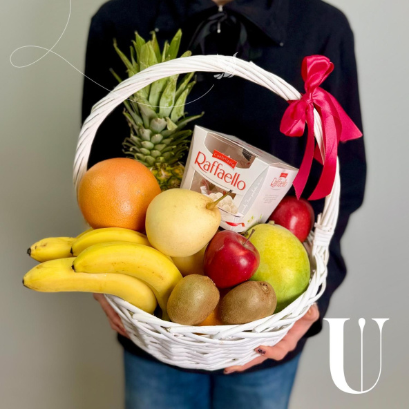Фруктовый ящик из винограда, груши, киви, яблок и мандарин