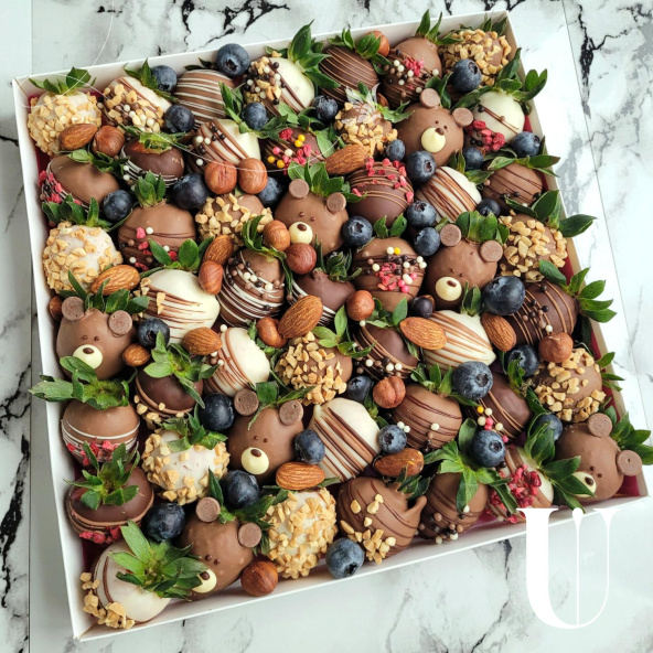Набор ягод свежей клубники, щедро покрытых слоем белого, молочного и тёмного шоколада, станет вкусным сюрпризом близким людям. Это оригинальное лакомство подойдёт как символ внимания любимым женщинам, друзьям и коллегам. Удобная упаковка позволяет взять десерт с собой на прогулку, пикник или праздник. Наслаждение утончённым вкусом гарантировано каждому гурману.