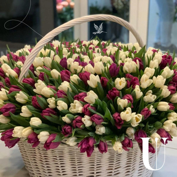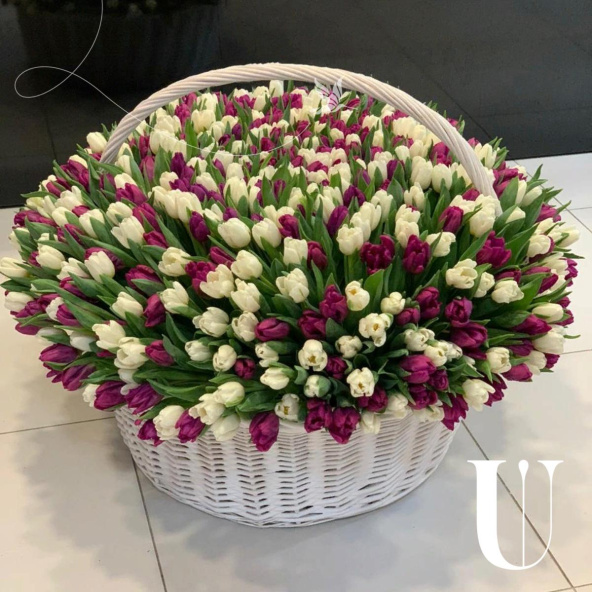 Корзина цветов "501 тюльпан в корзине"