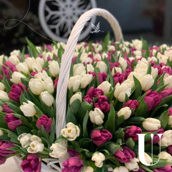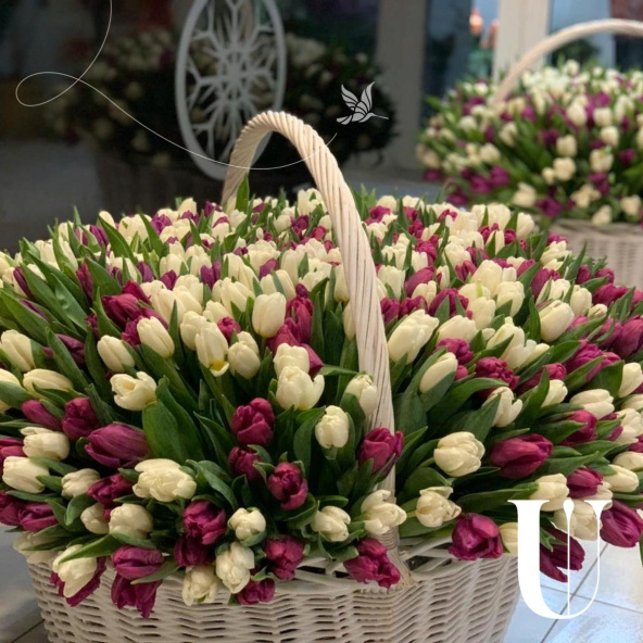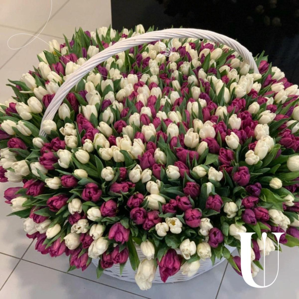 501 тюльпан в корзине
