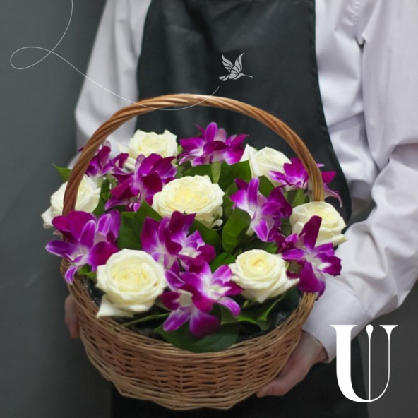 - Корзина круглая (выс. 13 см, выс. с ручкой 43 см, шир. 25 см) - 1 шт