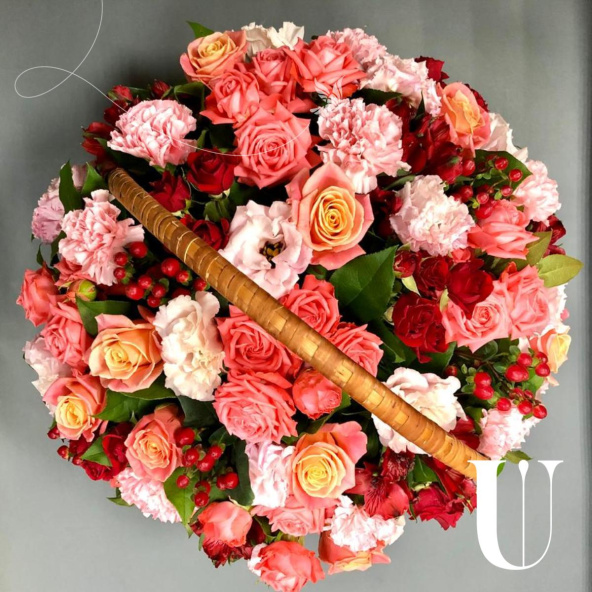 - Корзина круглая (выс. 13 см, выс. с ручкой 45 см, шир. 42 см) - 1 шт