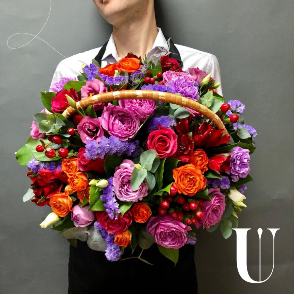 - Корзина круглая (выс. 13 см, выс. с ручкой 43 см, шир. 25 см) - 1 шт
