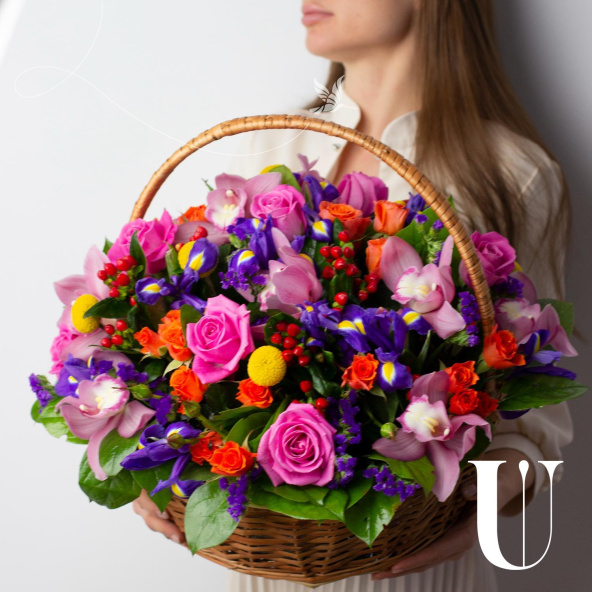 - Корзина круглая (выс. 13 см, выс. с ручкой 45 см, шир. 42 см) - 1 шт