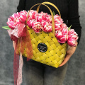 Кремовые розы и гермини, лавандовые маттиолы в сумке