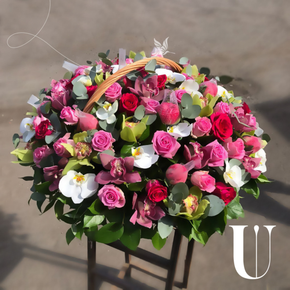 - Корзина круглая (выс. 13 см, выс. с ручкой 45 см, шир. 42 см) - 1 шт
