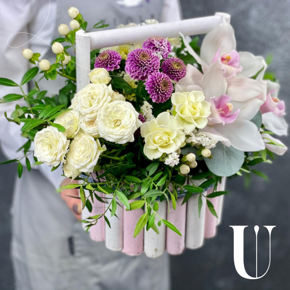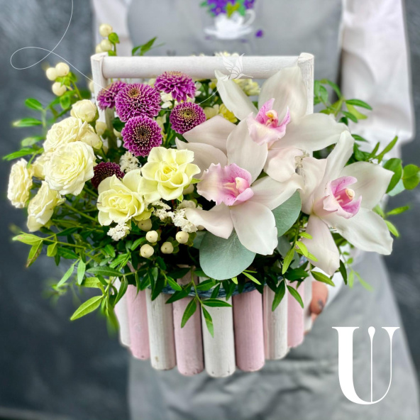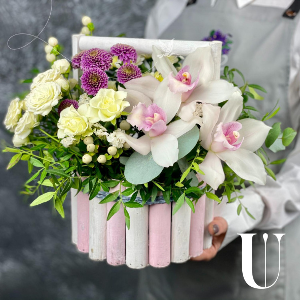 - Орхидея цимбидиум, бело-розовый - 3 шт