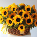 Цветочная композиция из кустовых хризантем, розовой лилии, белой орхидеи и розовых роз в корзине