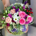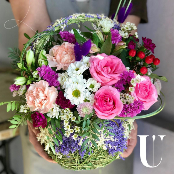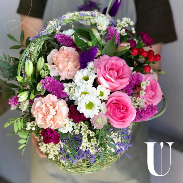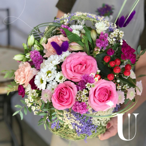 - Корзина луговая с одной ручкой, плетеная, микс (выс. 12см, выс с ручкой 32см, дл. 20см, шир. 20см) - 1 шт