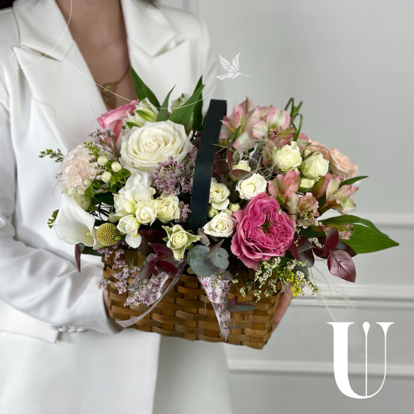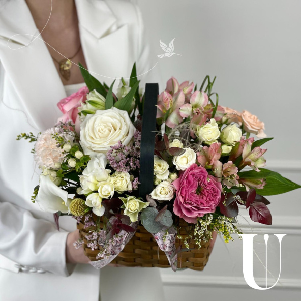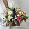- Корзина плетёная с ручкой (выс. 13 см, выс. с ручкой 25 см, шир. 20 см) - 1 шт