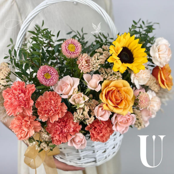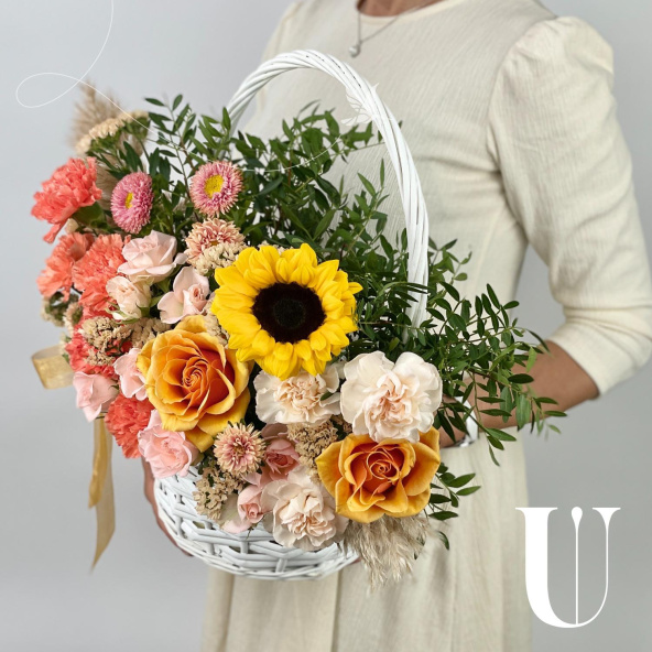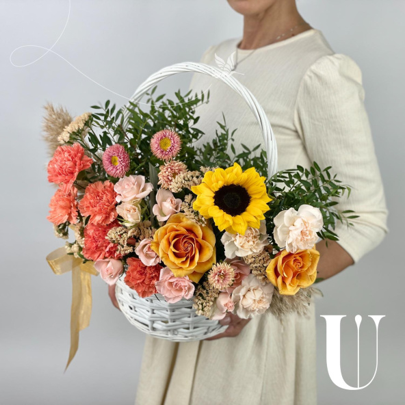 - Корзина круглая (выс. 13 см, выс. с ручкой 43 см, шир. 25 см) - 1 шт