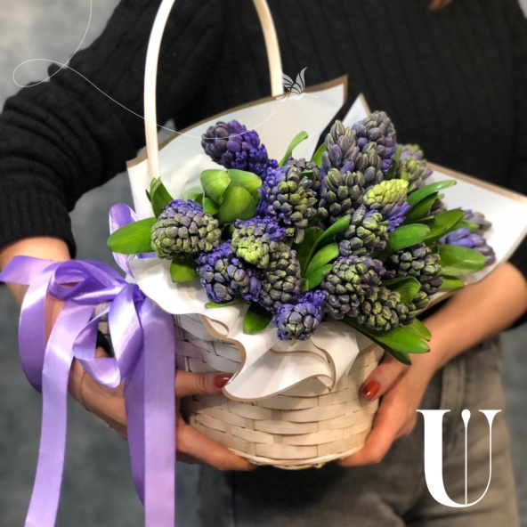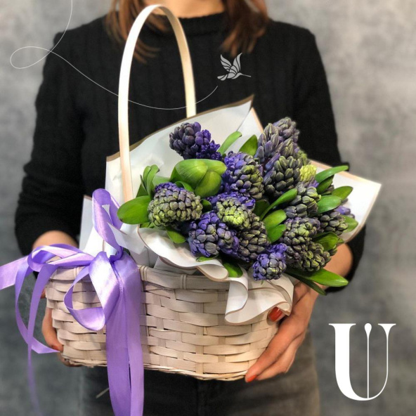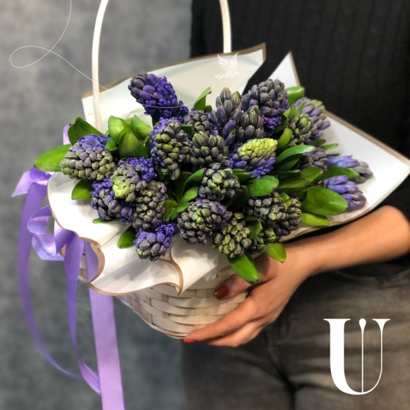 Лукошко из прекрасных гиацинтов наполнит ваш дом восхитительным, тонким ароматом