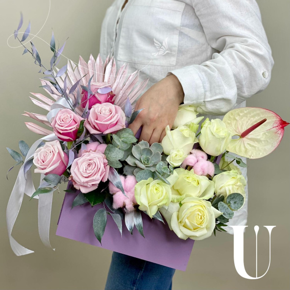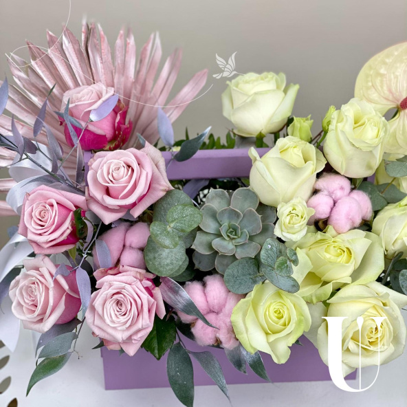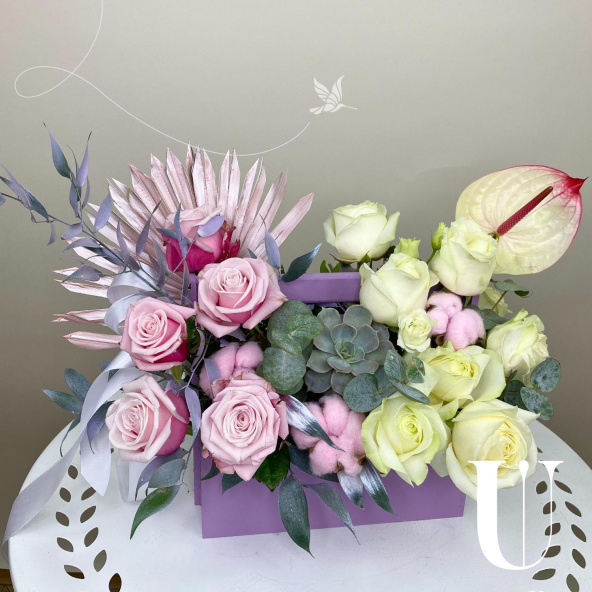 - Ящик деревянный, сиреневый (выс. 15см, с ручкой 30см, дл. 30 см, шир. 13 см) - 1 шт