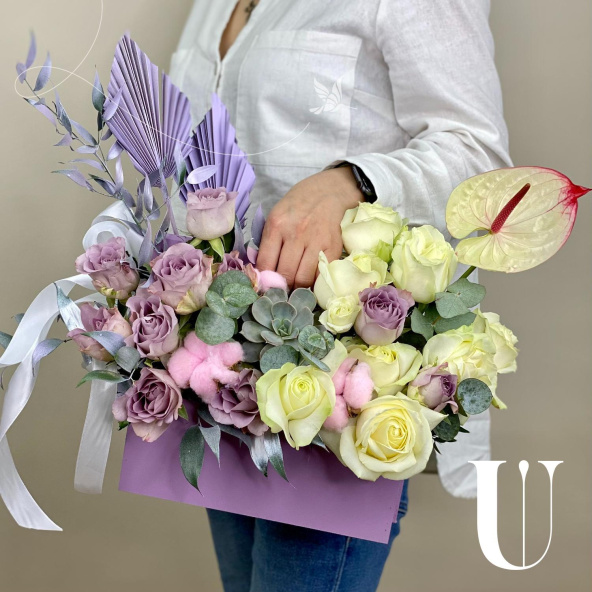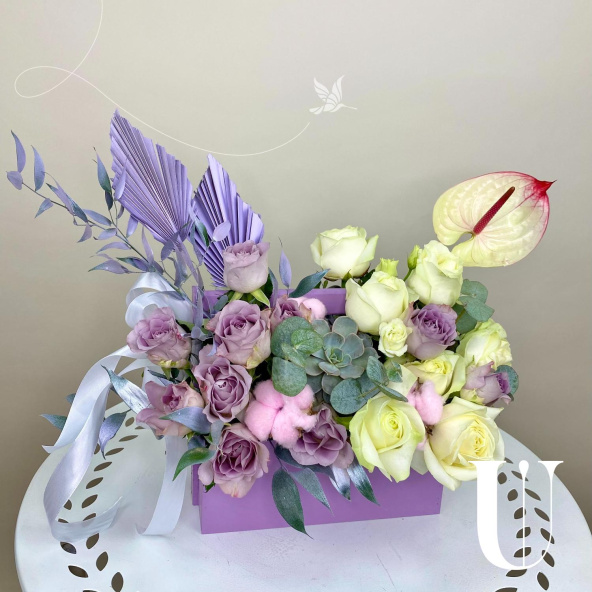 - Ящик деревянный, сиреневый (выс. 15см, с ручкой 30см, дл. 30 см, шир. 13 см) - 1 шт