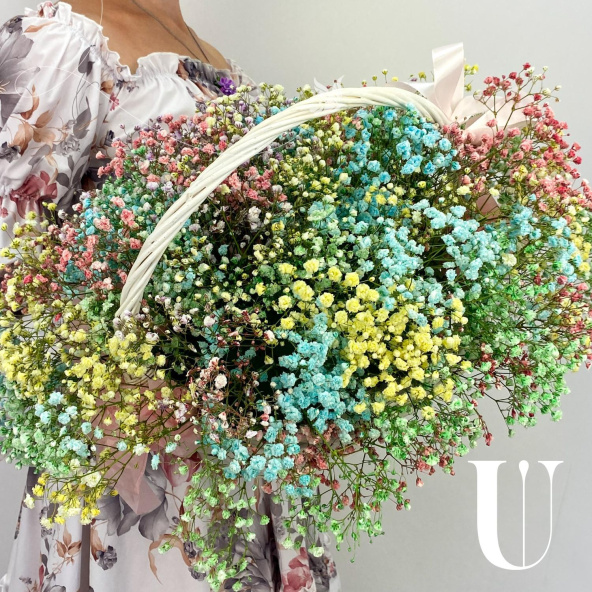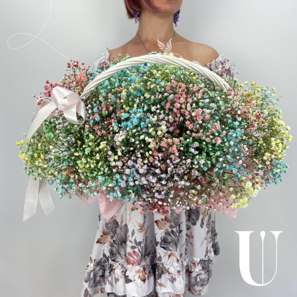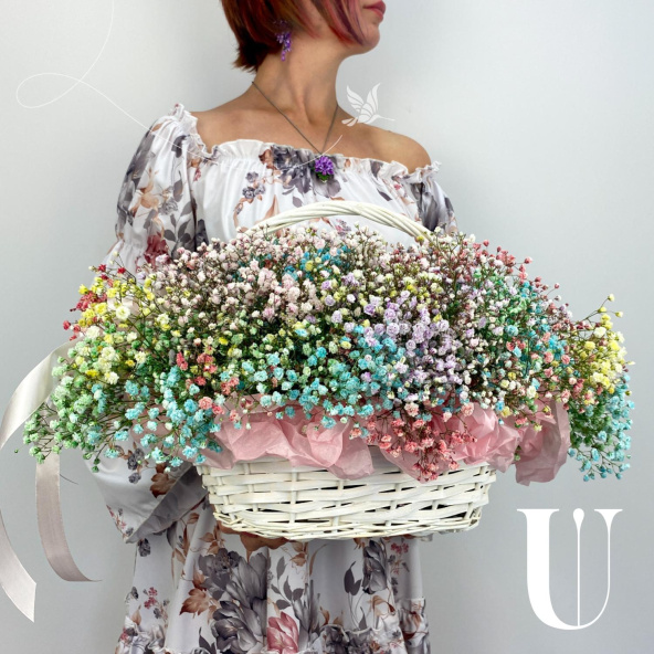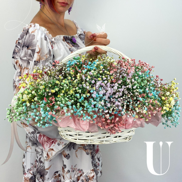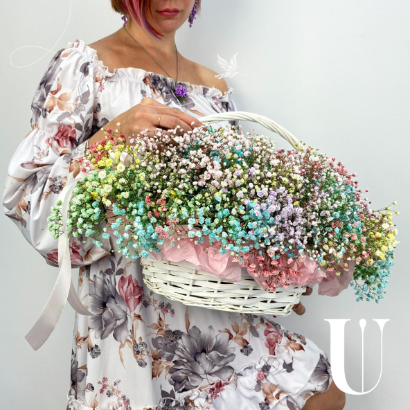Радужная гипсофила в корзине