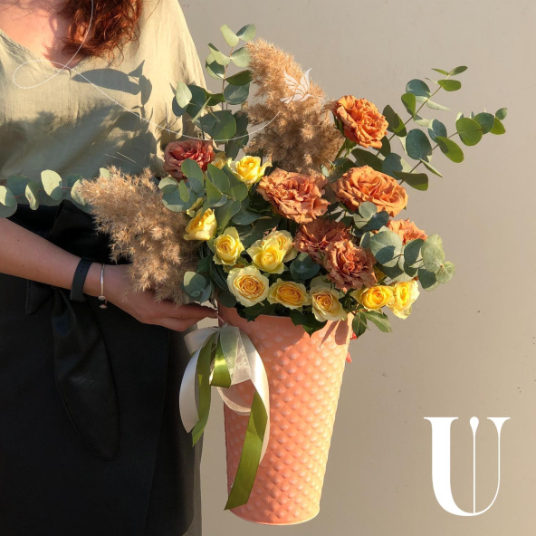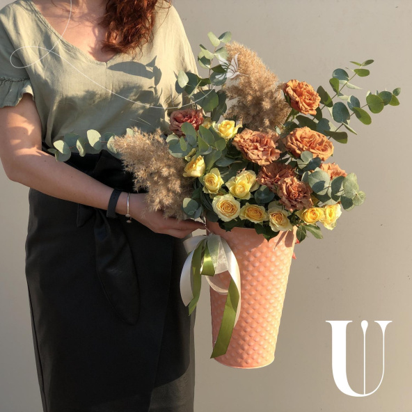 Ваза выполнена из высококачественного пластика и не является одноразовой, может быть использована в дальнейшем в качестве интерьерного решения