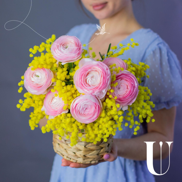 Корзина цветов "Эммануэль и мимоза"