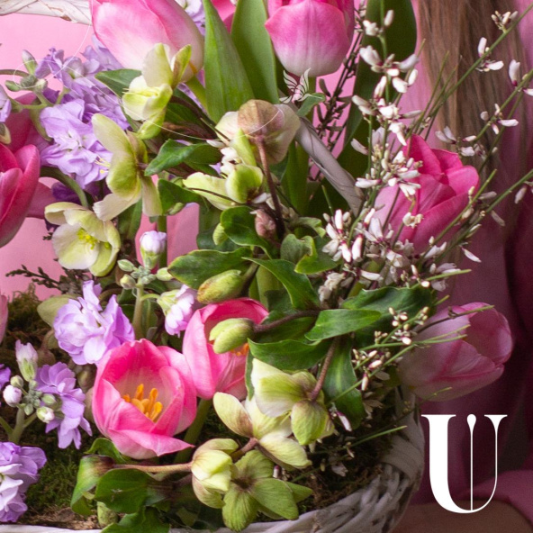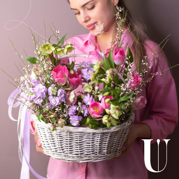 - Корзина белая овальная на биофлоре (шир. 30 см)