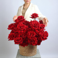 Композиция из роз сортов Нина и Фридом в плетеном кашпо