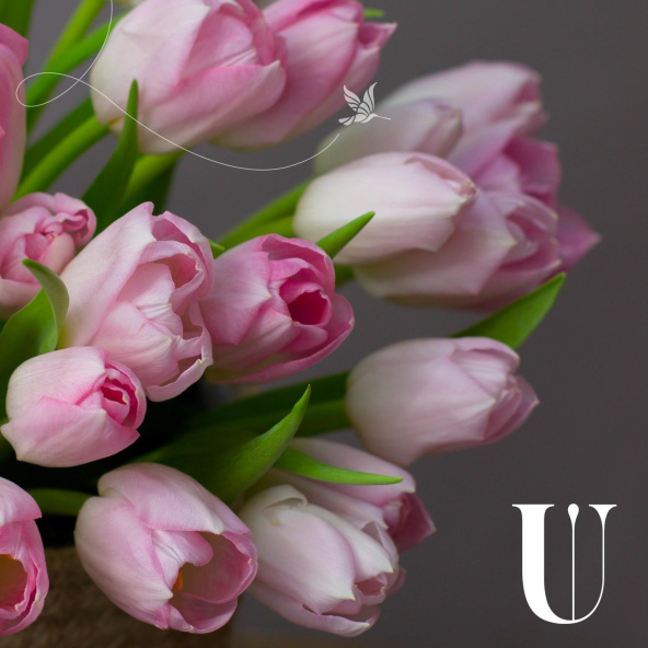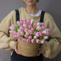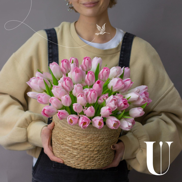 Авторская композиция из белых эустом, кустовых роз и роз микс в корзине
