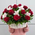 Выбирая корзину из красных роз и белых орхидей с зеленью "Яркое поздравление", вы делаете отличный выбор для подарка, который будет радовать и напоминать о вас долгое время.