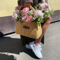 Кремовые розы и гермини, лавандовые маттиолы в сумке