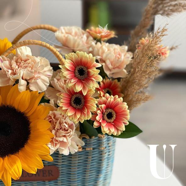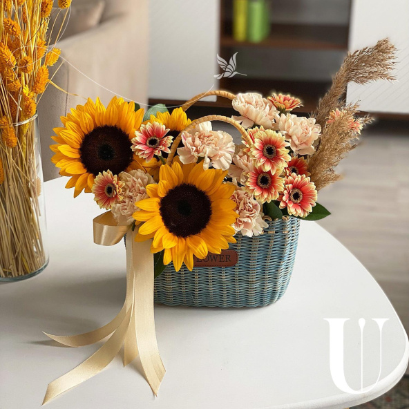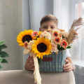 - Корзина луговая с двумя ручками, плетеная, микс (выс. 13см, выс с ручкой 22см, дл. 25см, шир. 15см) - 1 шт