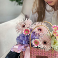 - Корзина луговая с двумя ручками, плетеная, микс (выс. 13см, выс с ручкой 22см, дл. 25см, шир. 15см) - 1 шт