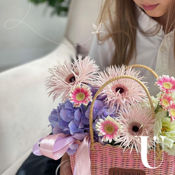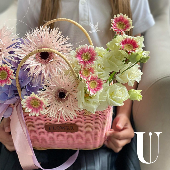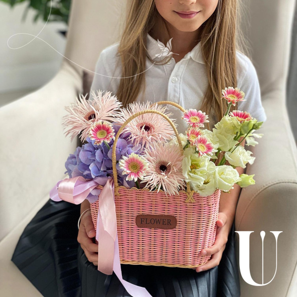 - Корзина луговая с двумя ручками, плетеная, микс (выс. 13см, выс с ручкой 22см, дл. 25см, шир. 15см) - 1 шт